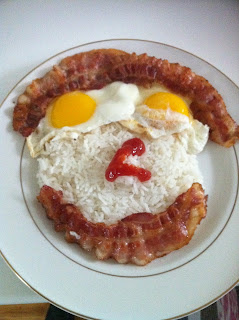 I woke up to a wonderful surprise this morning for breakfast! My awesome wife made me my favorite meal. Rice, eggs, and bacon. Needless to say I devoured the whole plate in seconds. This is how I've gained 10 pounds since I've been married. We really need to go back to the gym. Even though I HATE running I know I need to get back into it. It takes 3 weeks of running everyday to get over the hump. Hopefully I can dedicate that.... I hope my wife makes me something else amazing for breakfast tomm or cereal it is. Frowny face